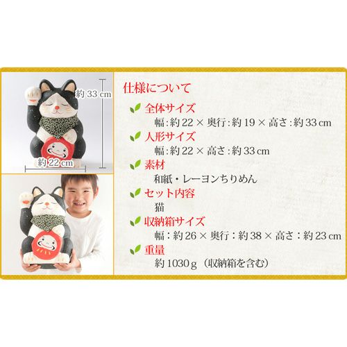 他の画像を見る 送料無料 招き猫 商売繁盛 (特大)ちぎり和紙 縁起物 福猫 金運 開店お祝い、インテリア置物に最適 招き猫【開運 千万両 招き猫(特大)ちぎり和紙 6-462】リュウコドウ 龍虎堂 送料無料 販売価格 ¥ 33,000 税込 在庫切れ 詳細を見る お気に入りに登録する