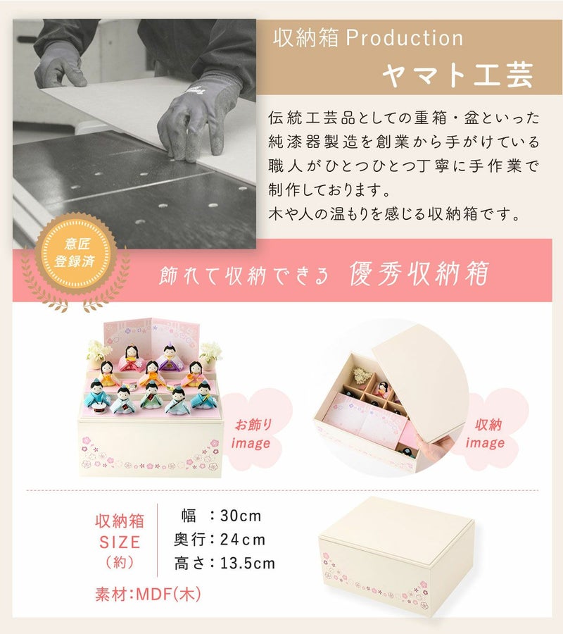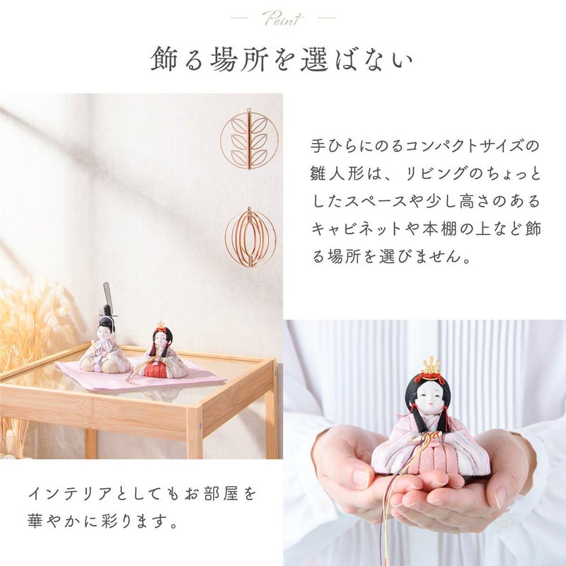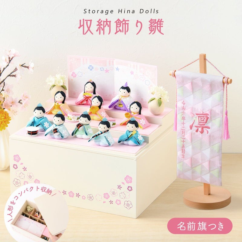 他の画像を見る おしゃれなひな人形 ちりめん 30cmスペースで飾れる! 龍虎堂 【新作】 雛人形 コンパクト おしゃれ かわいい 2026年 お雛様 収納飾り雛 ぽてり雛 心春 名前旗セット 西陣織 京都西陣織 送料無料 10%OFFクーポン 販売価格 ¥ 43,000 税込 詳細を見る お気に入りに登録する