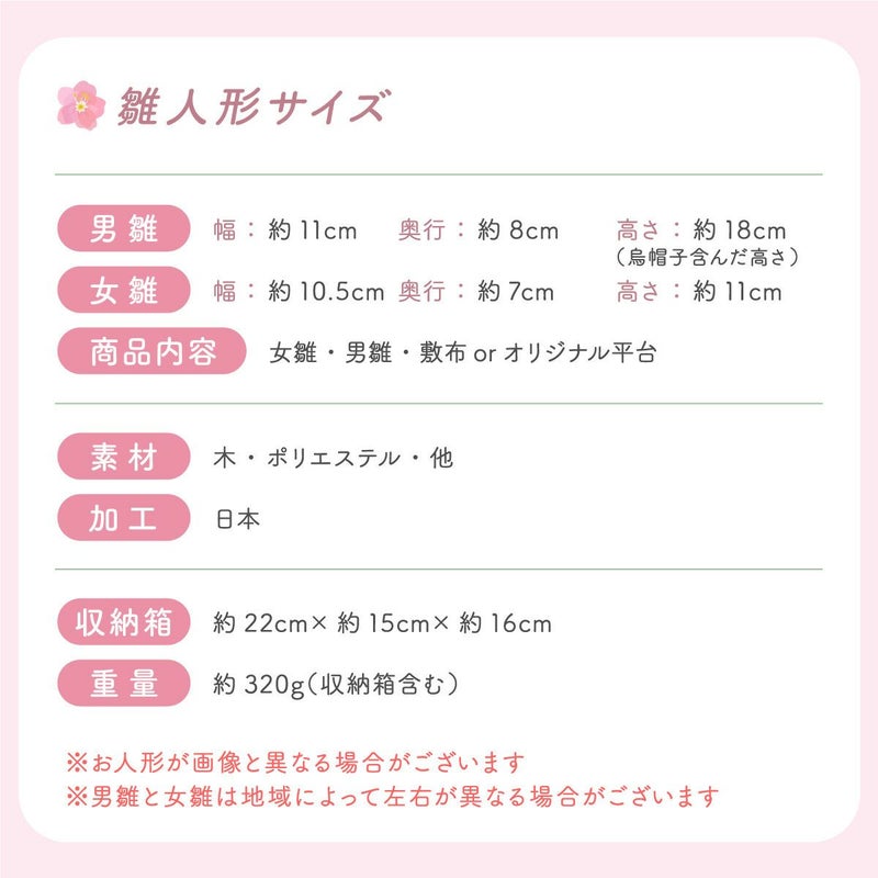 他の画像を見る 雛人形 コンパクト 雛人形 ひな人形 おひなさま お雛様 かわいい 桃の節句 初節句 ひなまつり コンパクト おしゃれ 玄関飾り 季節飾り プレゼント 孫贈り 雛人形 コンパクト モダン 新作 2026年 おしゃれ かわいい お雛様 ミニ サイズ ひな人形 五人飾り 彩絵華小紋雛(平飾) 桐箱 アクリルケース 陶器 陶磁器 送料無料 販売価格 ¥ 13,200 税込 〜 販売価格 ¥ 税込 詳細を見る お気に入りに登録する