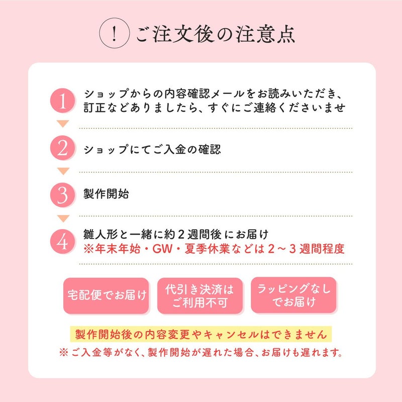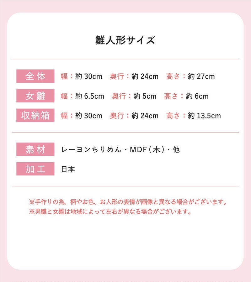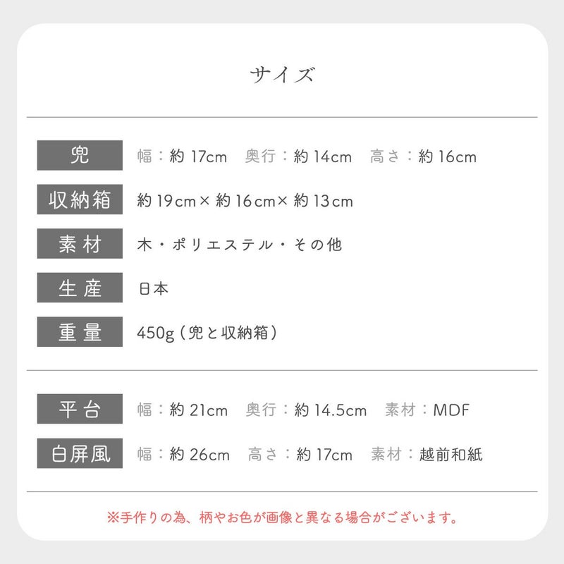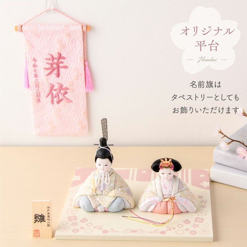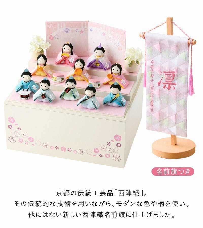 他の画像を見る おしゃれなひな人形 ちりめん 30cmスペースで飾れる! 龍虎堂 【新作】雛人形 コンパクト おしゃれ 木目込み 木目込み雛人形名前旗セット 西陣 お雛様 2026年 かわいい 飾り台 春日雛 親王飾り 名前旗 西陣織 送料無料 10%OFFクーポン 販売価格 ¥ 47,000 税込 〜 販売価格 ¥ 税込 詳細を見る お気に入りに登録する